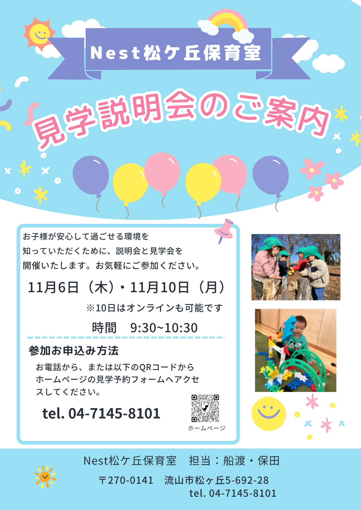 電話番号:04-7145-8101(Nest松ケ丘保育室代表電話)